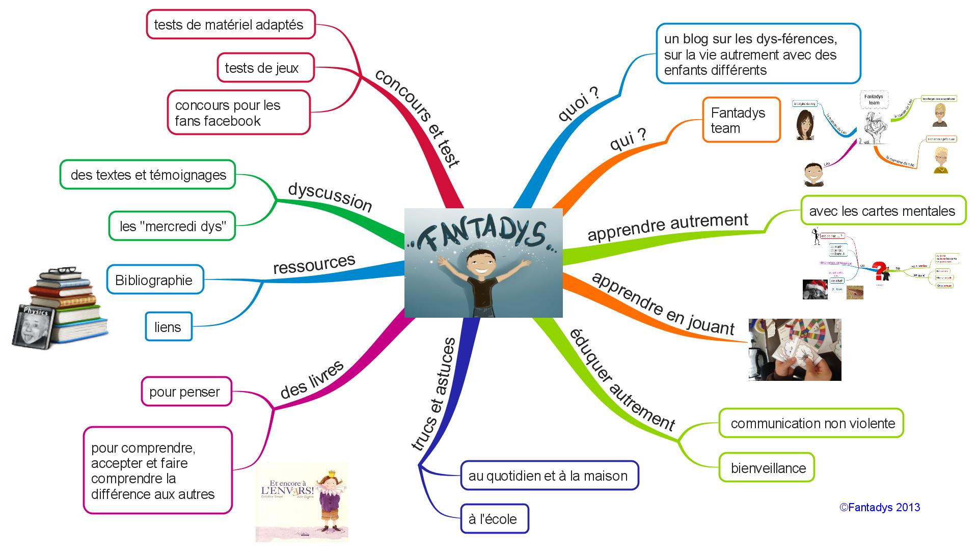 Fantadys est un blog sur les dys-férences, sur la vie autrement avec des enfants différents : apprendre différemment (mind-mapping, par le jeu), éduquer autrement (éducation positive et bienveillante) mais aussi des trucs et astuces pour se faciliter la vie au quotidien avec nos petits fantastiques !