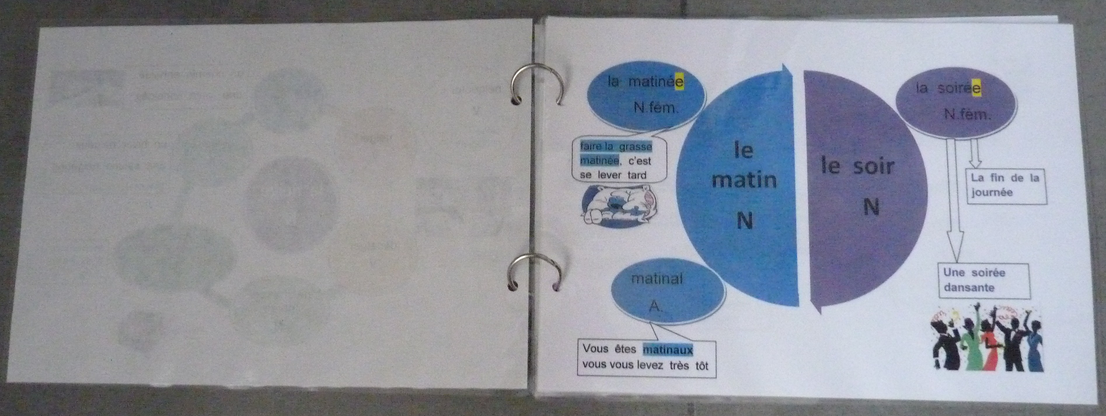 - Ces cartes, plastifiées, sont reliées par 2 anneaux et forment un carnet de vocabulaire , facilement consultable , modifiable et bien sûr prêt à être complété l’an prochain sur le même principe et peut être avec d’autres idées aussi!