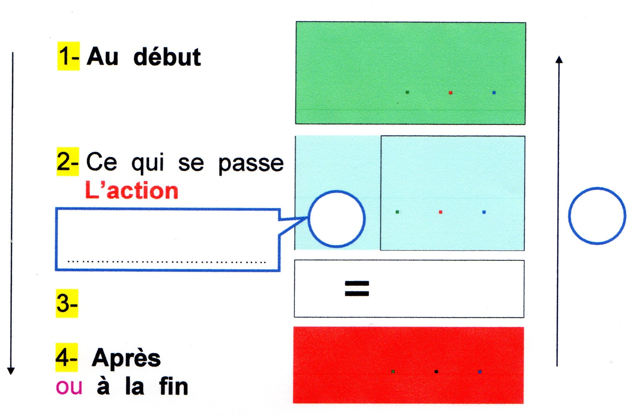 On pourra ensuite, avec ce même schéma, trouver l’action quand on a la situation initiale et la situation finale, et en dernier lieu trouver la situation initiale quand on a la situation finale et l’action ( dernière étape car bien plus compliquée ….)