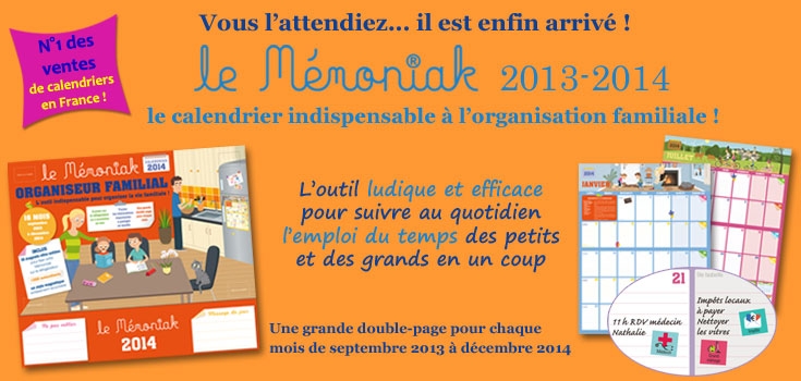 On ne dirait pas comme ça mais je suis terriblement désorganisée ! Pour la rentrée (qui arrive à grand pas), j’ai décidé qu’il fallait que je remédie à tout ça. Objectif : mieux gérer son quotidien pour se simplifier la vie et gagner du temps ! En résumé : être une maman débordée mais organisée ! Oui car inévitablement je resterai une maman débordée, débordée par les évènements et un emploi du temps surchargé par les multiples rendez-vous…et aussi débordée par ce qui m’arrive et que je n’aurais jamais imaginé : être maman d’un enfant dys-fférent. Alors plutôt que de me répéter inlassablement « je n’y arriverai jamais » je suis partie à la recherche d’une parfaite organisation sur Internet. Alors j’ai tapé : « comment être une super maman organisée ? », bon déjà cela m’a permis de constater que le phénomène est à l’échelle planétaire et que maman débordée rime avec maman épuisée. Des astuces, des conseils, des tableaux à créer…mais rien de bien simple et prêt à l’emploi ! Mais en cherchant un peu plus, je suis tombée sur l’Organiseur Familial MEMONIAK 2014 des Editions 365, et je me suis tout de suite dit c’est celui-là qu’il me faut !