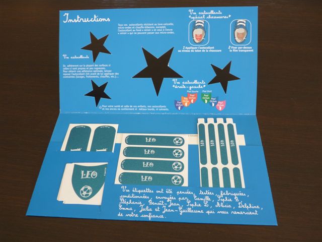 Léo adore participer pour coller ces étiquettes sur ses affaires, je dis pas que c’est simple à faire pour lui mais il essaie ! voilà le travail de Léo de ce week-end :