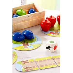 Un jeu coopératif où il faut sauver tous ensembles les fruits du verger avant que le corbeau ne les mange ! De jolies pièces en bois, faciles à manipuler, pour apprendre à reconnaître les couleurs et sensibiliser les plus petits aux nombres.