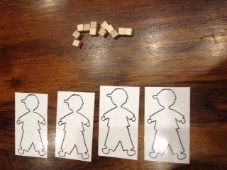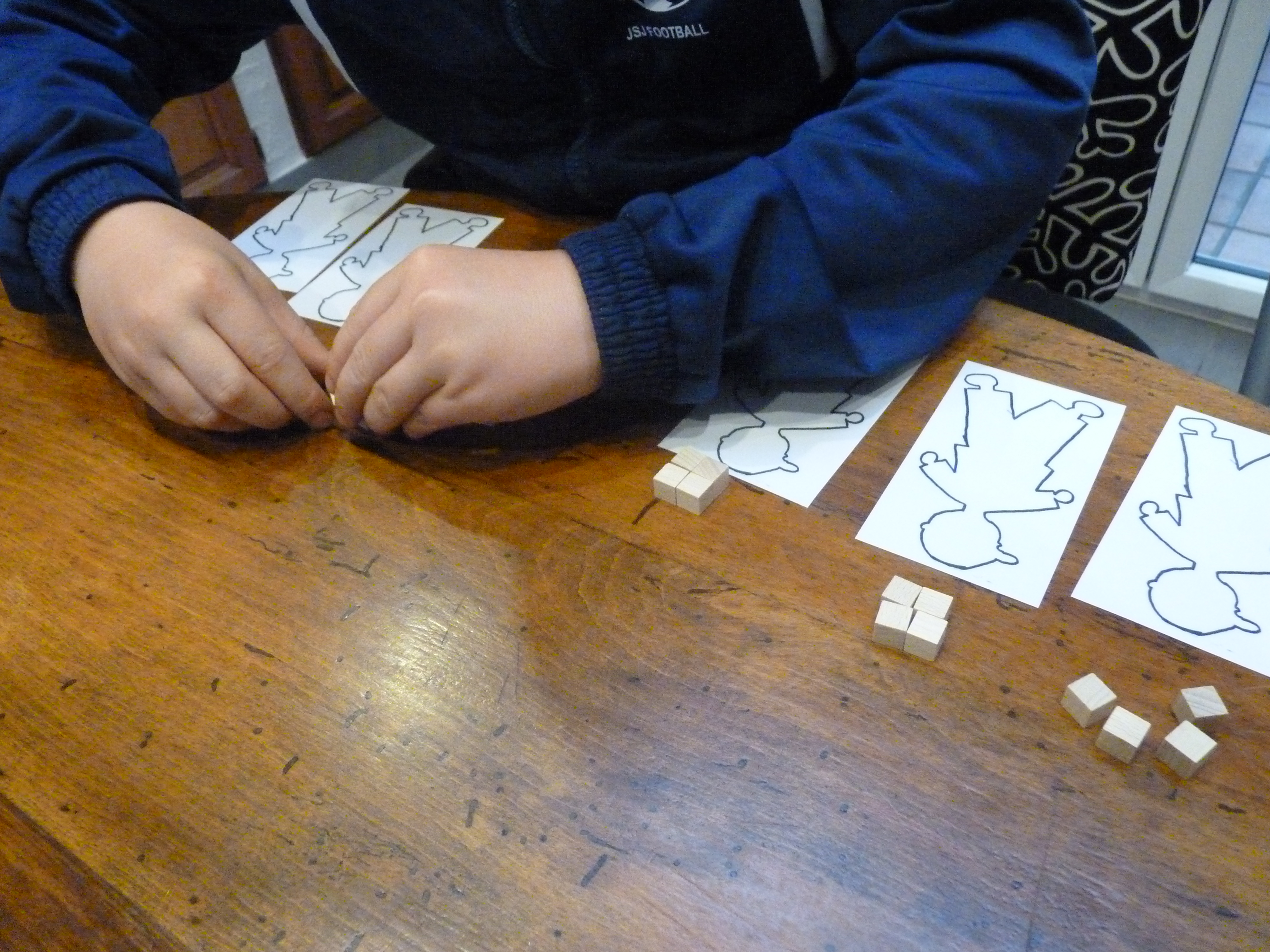 - J’installe devant Léo les 12 petits cubes et les 4 silhouettes.