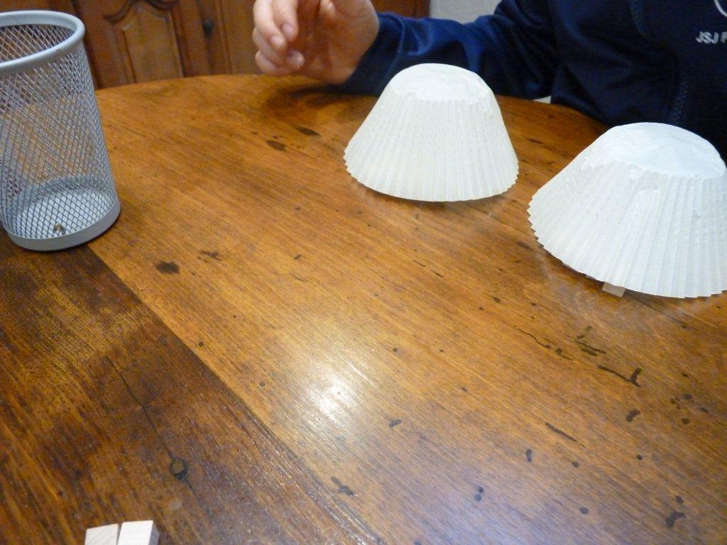 Léo allait prendre un 5ème moule mais , en recomptant ( il a dû s’en assurer… toujours ce problème de dénombrement quand il manipule seul ….), il a dit : il n’y en a que 4, ils sont donc partis dans la corbeille.