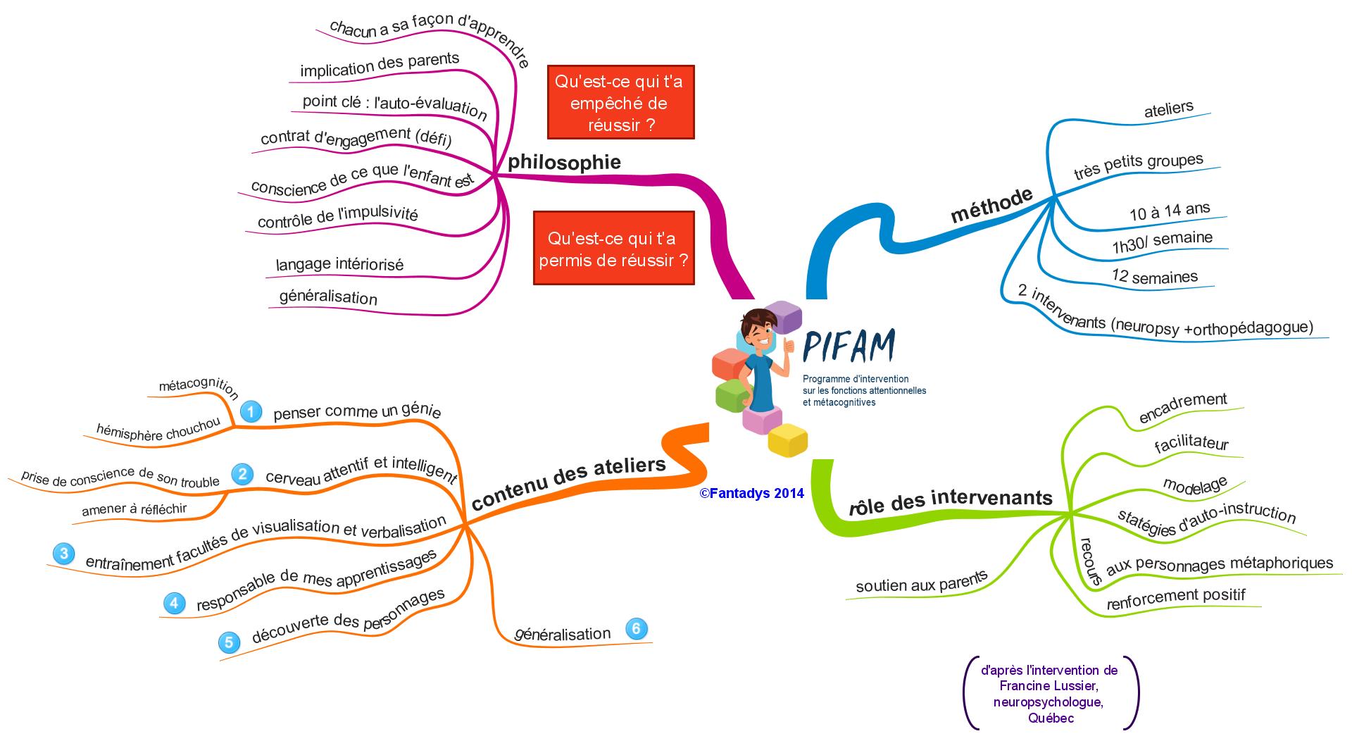 Bonsoir, réponses très difficiles : le programme PIFAM élaboré par Francine Lussier est canadien. Actuellement Mme Lussier est en France et fait des formations ouvertes aux neuropsychologues et orthophonistes . Son programme va être distribué en France encore faut-il qu’il soit effectué par des personnes formées . Quant à la gestion mentale, il y a des orthophonistes qui se sont formées à cette pratique (nous avons la chance que ce soit notre cas !!!) mais je ne sais pas vraiment comment on peut trouver toutes ces personnes (neuropsy ou orthophonistes) avec leurs différentes formations indiquées. Désolée de ne pas pouvoir vous aider davantage mais j’essaierai de me renseigner.