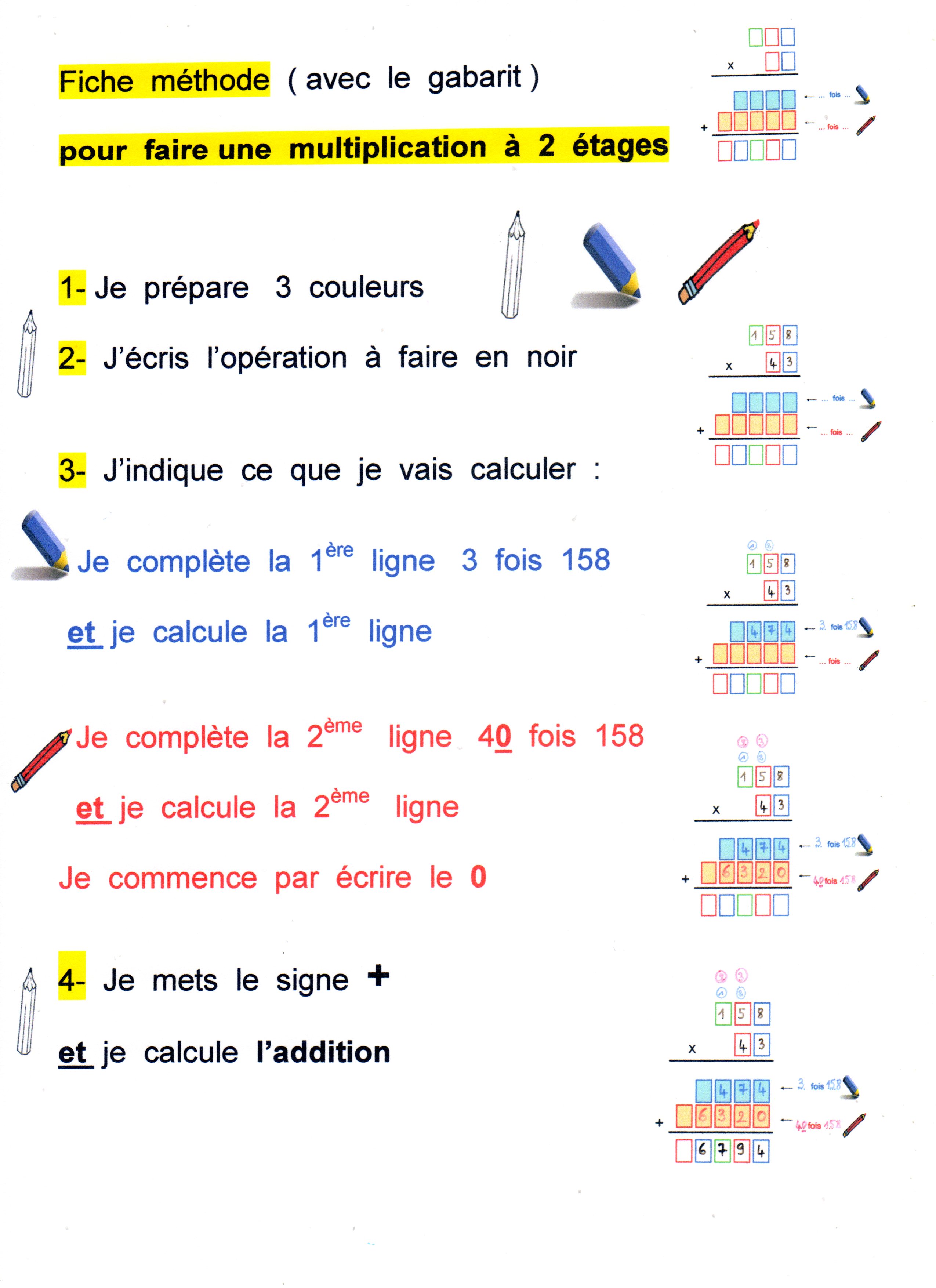 Dans les derniers gabarits publiés sur le blog, figure celui de la multiplication à 2 étages ( ou 2 chiffres au multiplicateur)