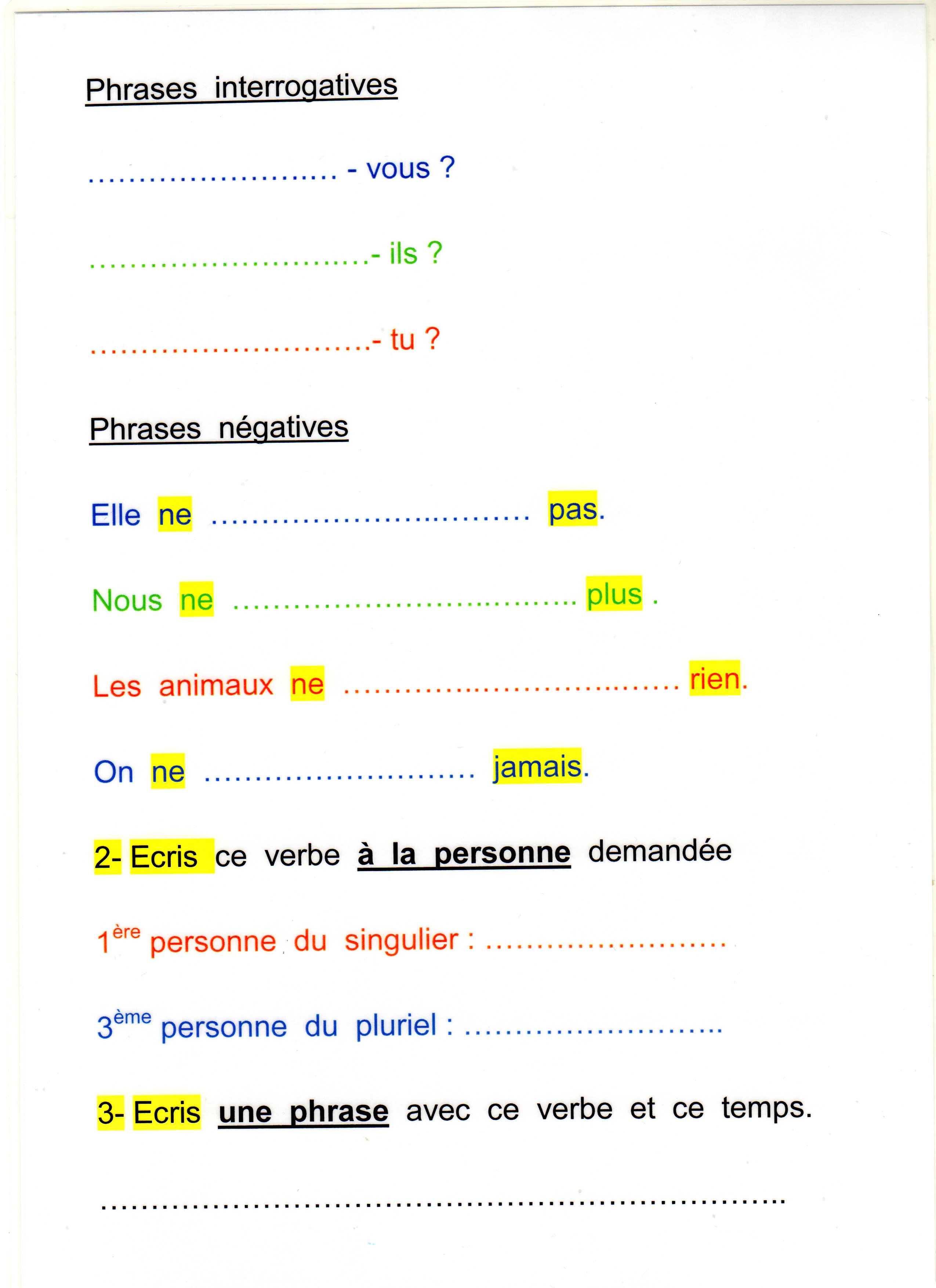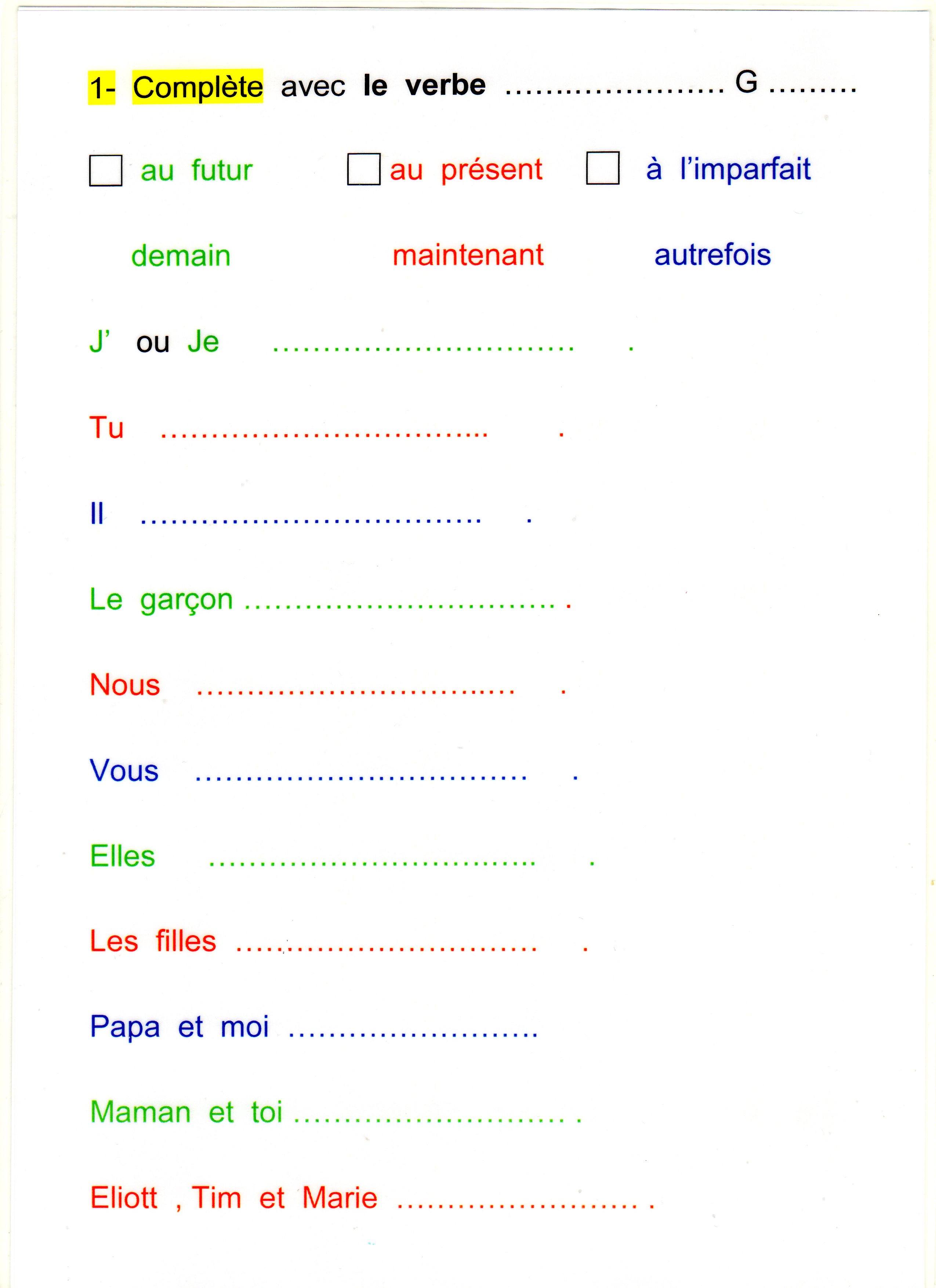 - Maintenant que tu viens d’apprendre le verbe …. au ….., tu vas le conjuguer à un autre temps (déjà connu)