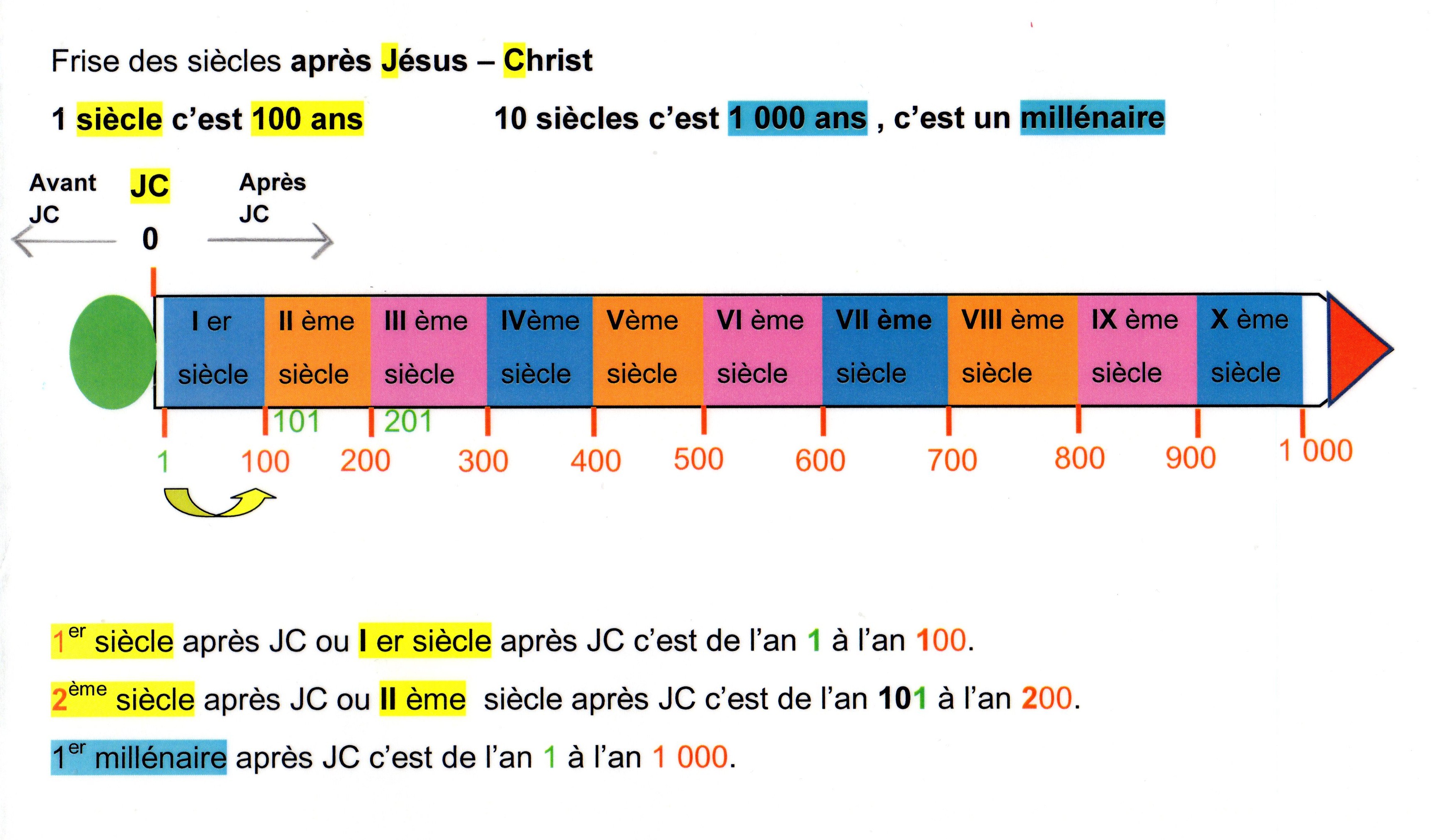 Pour les siècles, très tôt je leur ai donné l’astuce que par rapport à la date, on prenait le / ou les deux premiers chiffres et on rajoutait toujours +1 pour connaitre le siècle. Depuis environ deux ans,cela commence enfin à rentrer. Et ils le manient assez facilement.