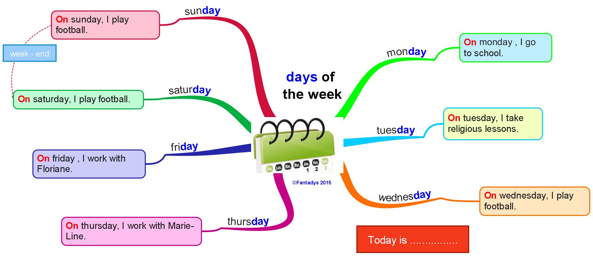 - Une idée de carte pour mémoriser …. avec « on ….. » et « Today is …. »