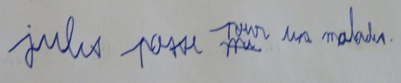 Proposition de phrase : Jules passe pour malade …. Elle ne convenait pas très  bien à l’oreille de Léo qui l’a transformée directement en l’écrivant ( le connaissant, cela ne m’a pas surpris !) :