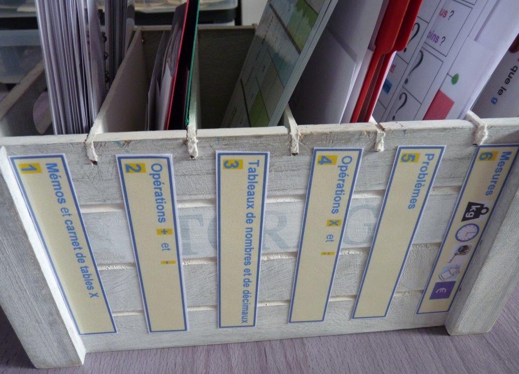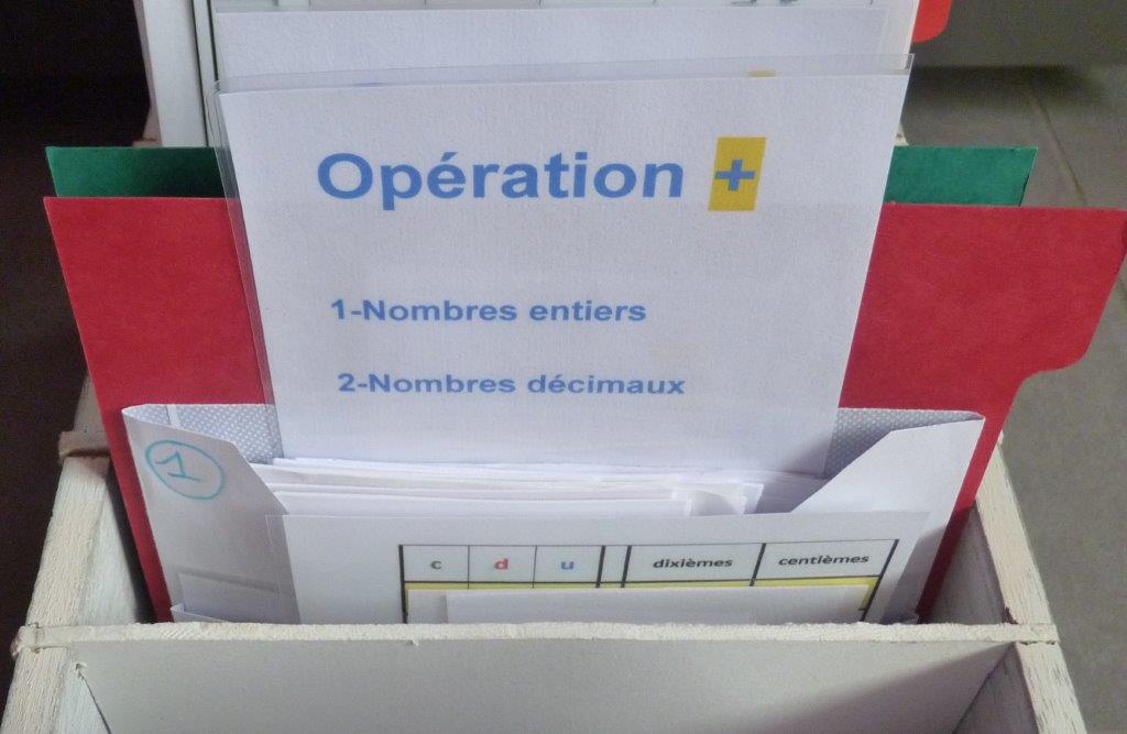 Voilà tout semble prêt, même si je sais que c’est pour une année car on ne transportera pas la boîte au collège ! Il me reste juste à montrer cette nouvelle boîte à outils à Léo à son retour de vacances et surtout à essayer de nous entraîner à l’utiliser par des petits jeux ou devinettes ( exemple : je me trouve à la case 3 , je suis un tableau qui sert à écrire ou lire les nombres , qui suis-je ? …. et le sens contraire : je montre une fiche , quand penses-tu pouvoir l’utiliser ?) puis on « compliquera » en le mettant en situation « réelle » de recherche (par exemple sur un problème, des opérations sur les décimaux ….de quoi ai-je besoin ?). Et on essaiera aussi de penser au rangement ….. C’est ça l’autonomie non ?????