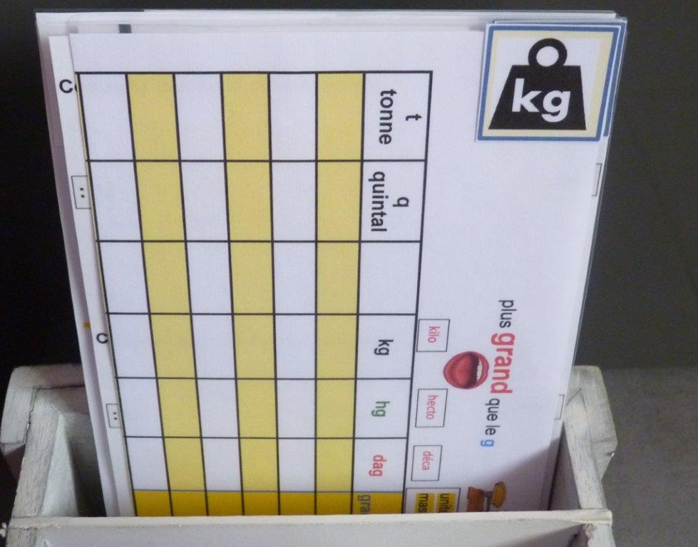 • n°6 : les mesures : les tableaux de conversion , repérage aussi avec des images en haut à droite