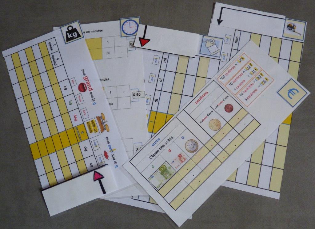 • n° 4 : opérations X et :  Gabarits plastifiés et gabarits papier (idem pour se servir que pour l’addition et la soustraction)
