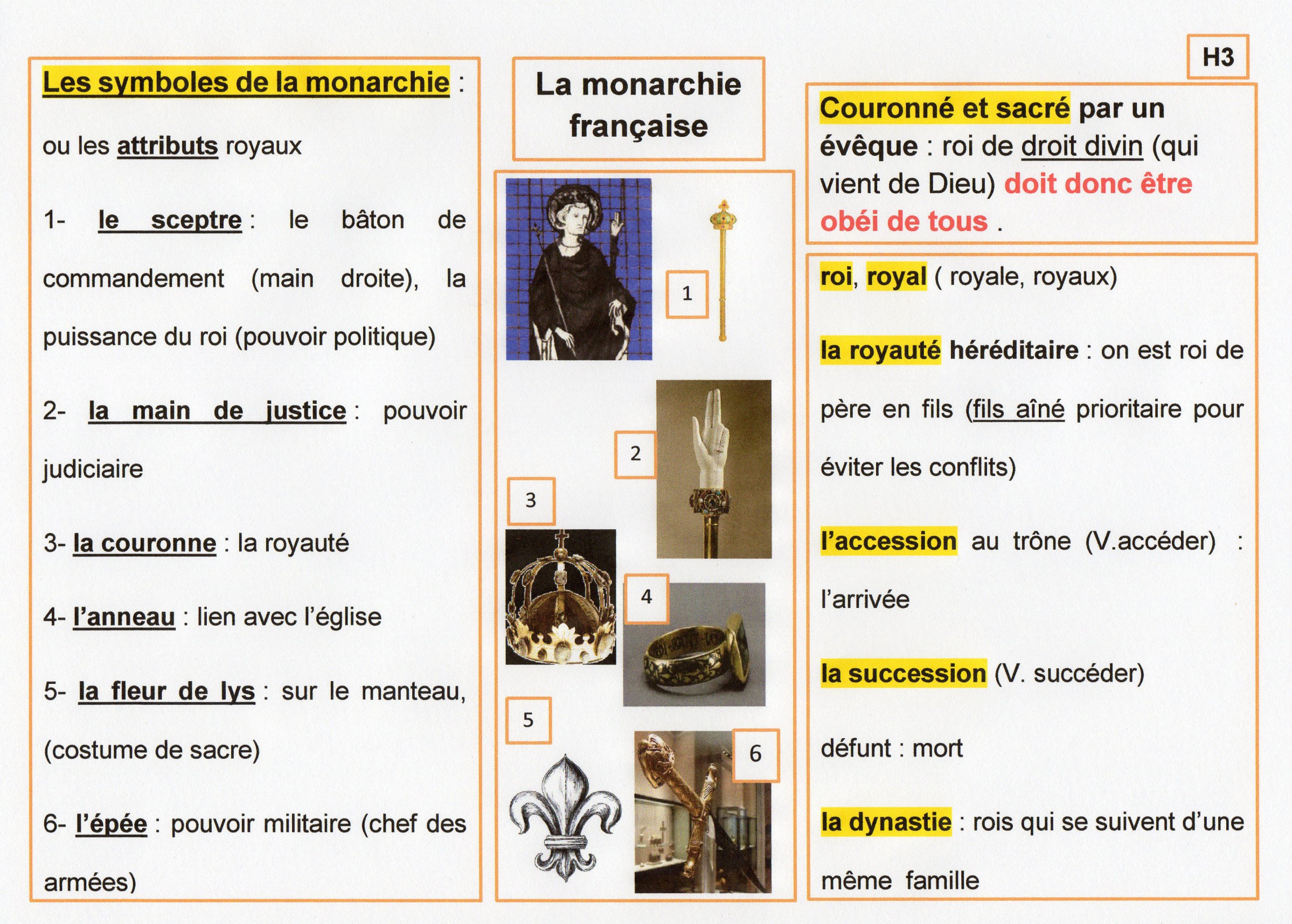 Voici donc la nouvelle fiche H3 : la monarchie française avec les termes suivants :