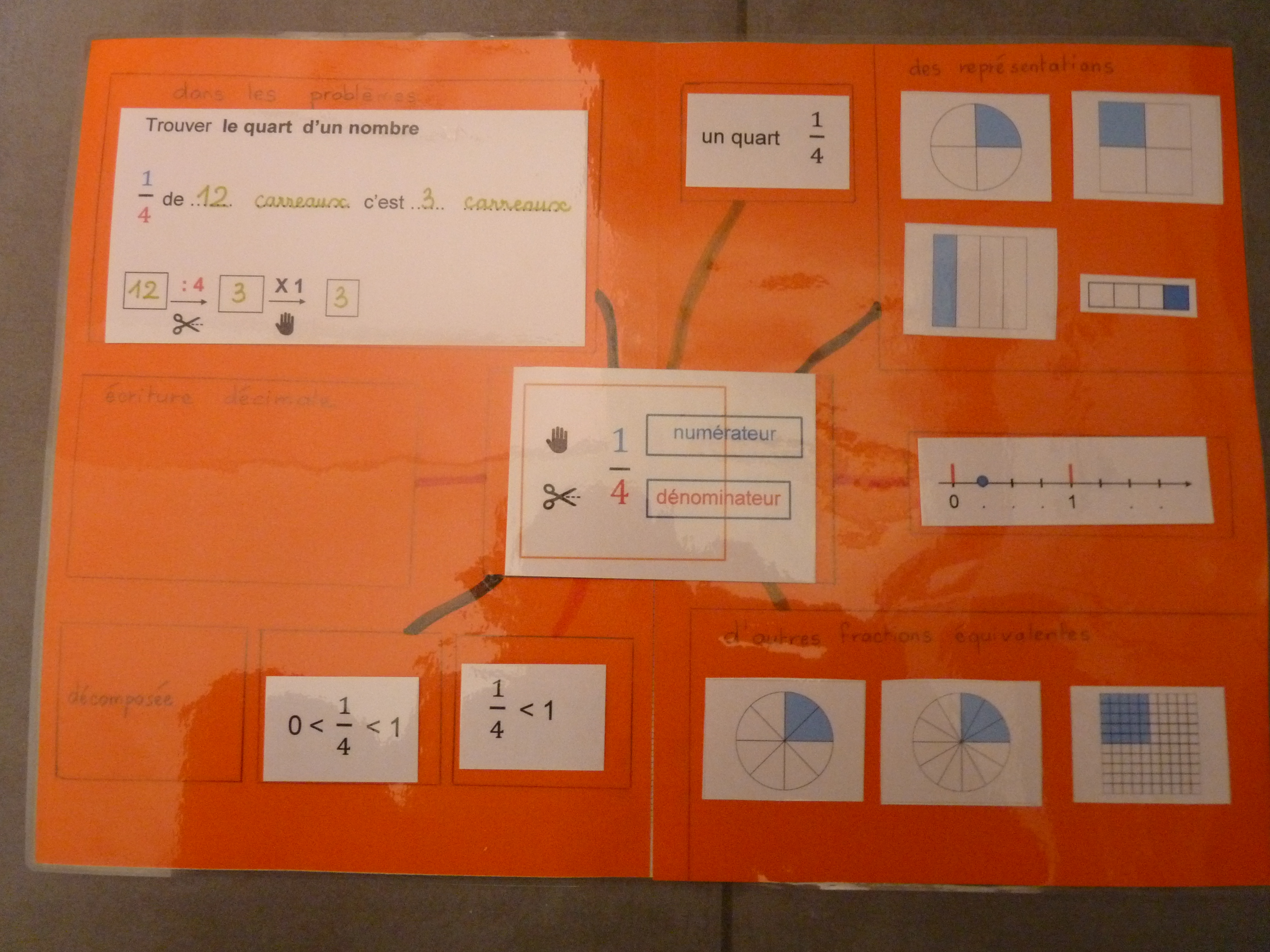 et plus tard , on passera aussi à l’écriture décimale (une place est prévue sur la feuille A3) et à la décomposition de fractions ( sous la forme d’une somme d’un entier et d’une fraction <1 ) ….. voire plus , selon ce qui sera vu en classe …..