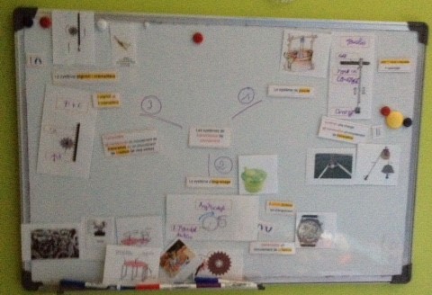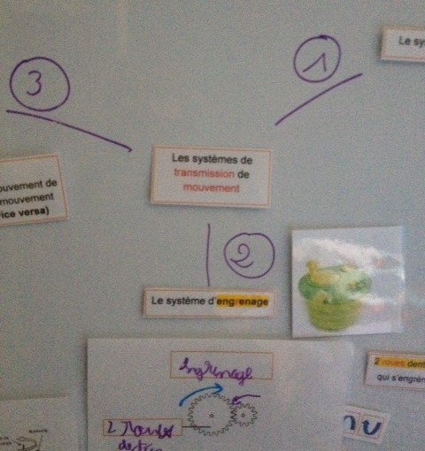- le sujet de la leçon est placé au centre du tableau : Les systèmes de transmission de mouvement