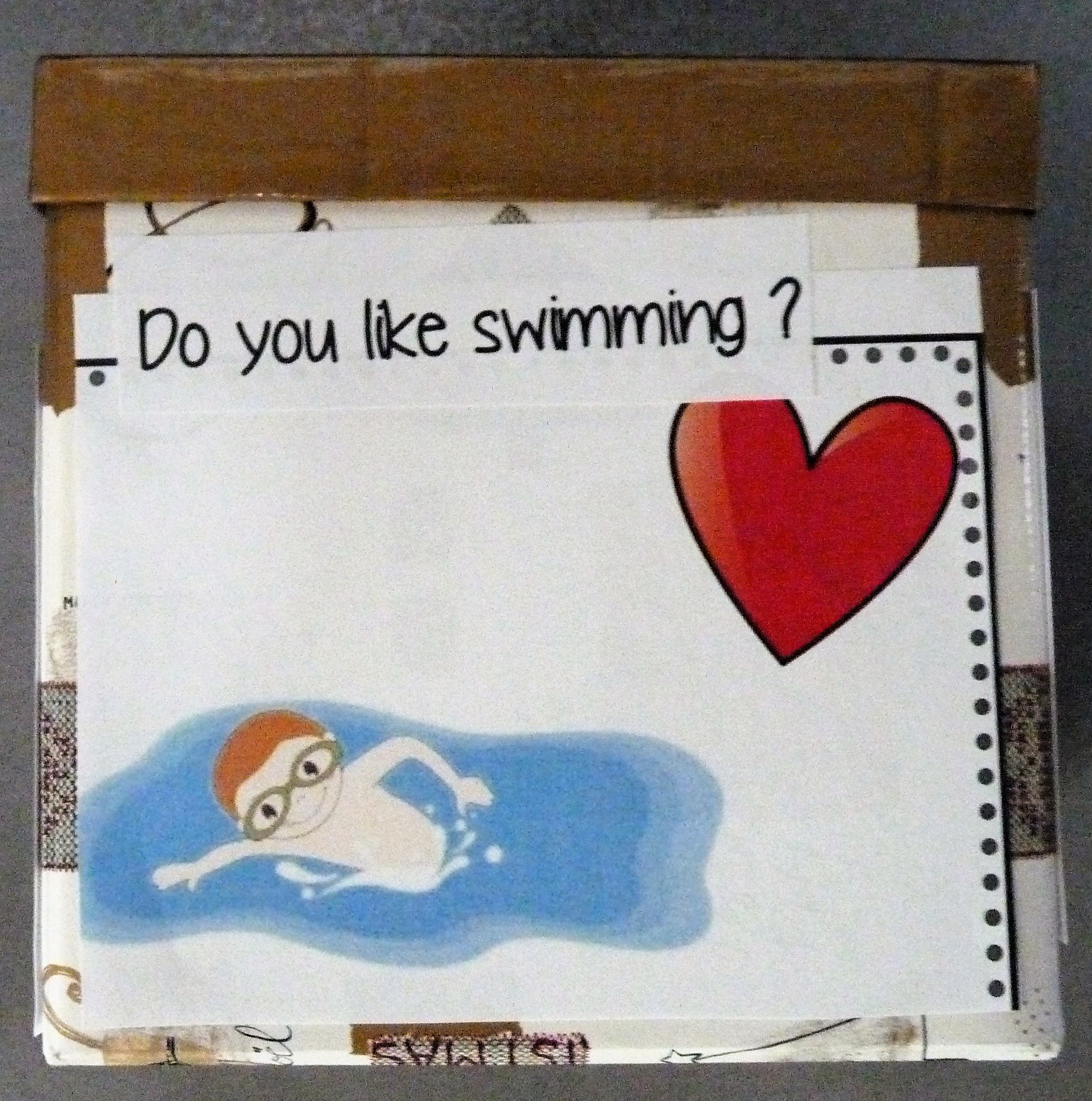 - « la boîte à questions » : une activité que nous allons essayer de mettre en pratique pendant les prochaines vacances… J’ai essayé de préparer une boîte qui donne envie de jouer !!!!! peut être un dé qui donnera l’action à effectuer aussi … dans un second temps …. à suivre donc …. voici le « prototype » en images , plus qu’à essayer …