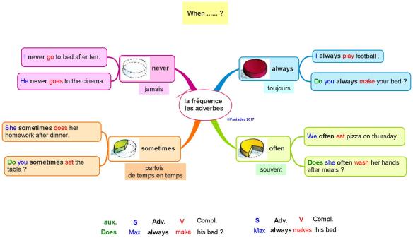 Les adverbes de fréquence , une fois qu’on les connaît, il faudra savoir les placer. Donc , autant faire les 2 choses en même temps .