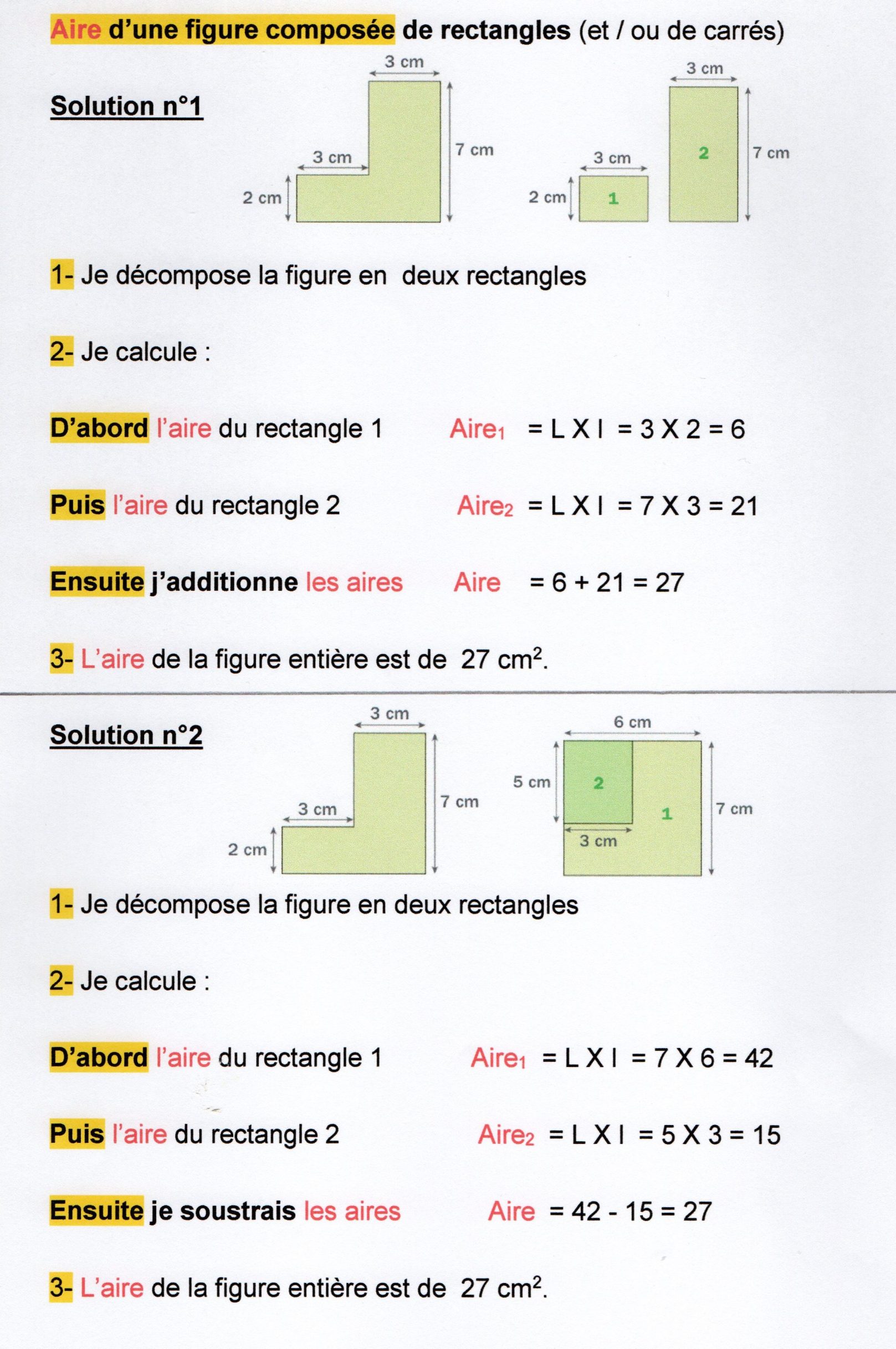 méthode 1 : addition de l’aire des 2 figures ( rectangle 1 et rectangle 2)