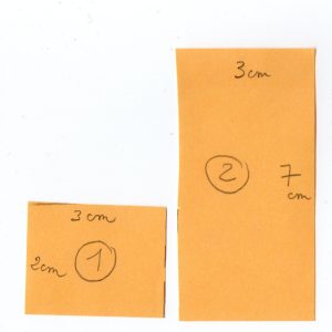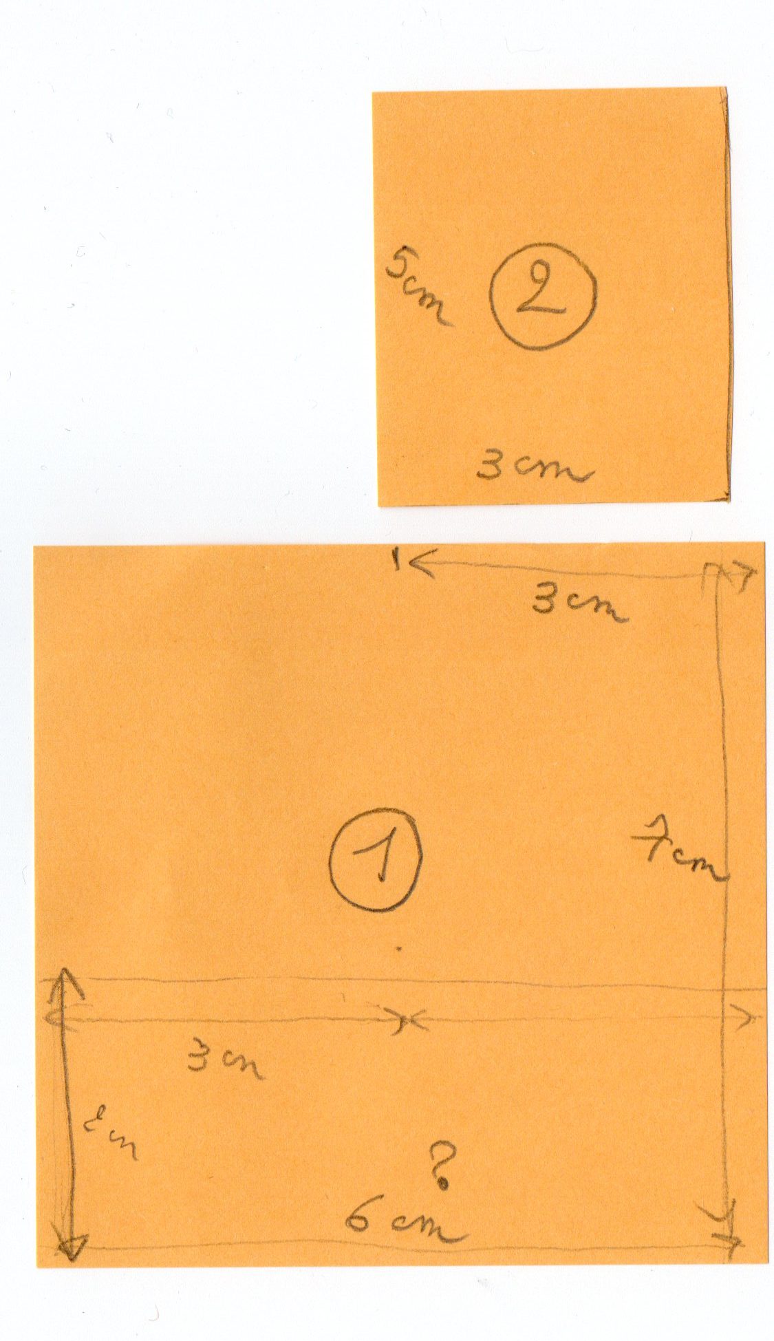 MAIS auparavant , nous sommes passés par la manipulation : ainsi pour les 2 solutions proposées pour résoudre les problèmes d’aires de figures composées de 2 rectangles , nous avons utilisé les figures suivantes et avons procédé au découpage avant de passer à la fiche méthode :