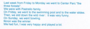 Problème posé : Revoir un peu d’anglais tout en essayant de faire des phrases : raconter en 5 phrases environ quelques jours passés à Center Parc , au preterit (of course!)