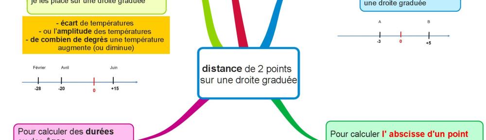 La distance entre 2 points sur une droite graduée est souvent utilisée dans les problèmes POUR (par exemple) :