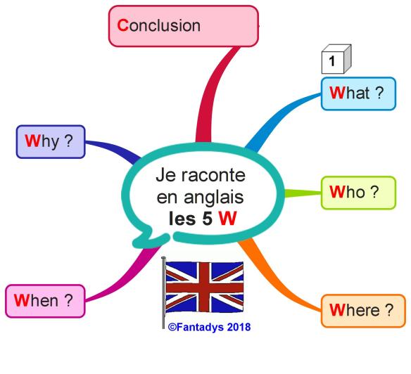 Comme en français avec le QQOQCP (Je raconte une carte pour raconter, n°12), en anglais les 5 W pour pouvoir raconter de manière « ordonnée » … On peut ajouter How ? (comment) ….