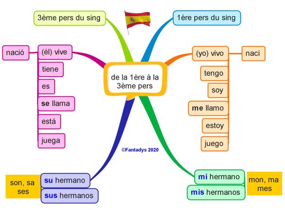 - Fiche de mémorisation construite à avoir sous la main (passage de la 1ère pers du sing à la 3ème)