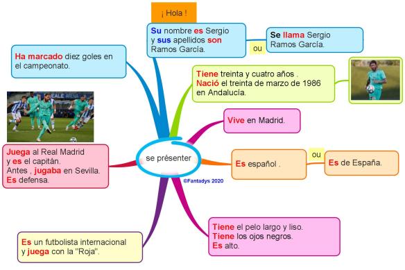 A partir de la carte mentale de Sergio Ramos (présentée à la 1ère pers) directement à l’écran , on est passé à la 3ème personne : cette fois, on le décrit . Nous avons eu besoin de reprendre la carte mentale des verbes (conjugaison faite en 5ème) et revoir les déterminants.