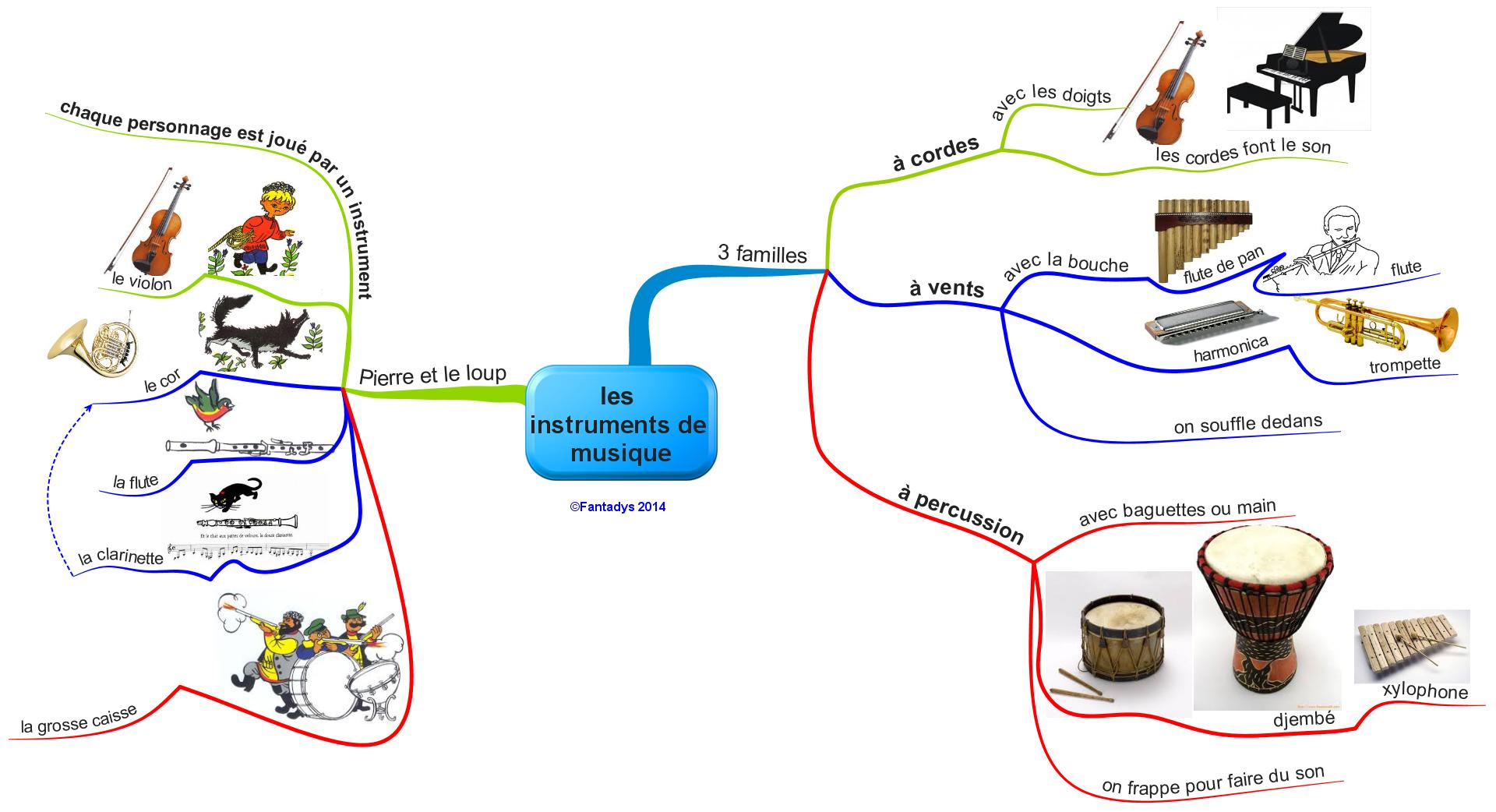 Une carte pour résumé un travail sur les instruments de musique et pour mémoriser l’essentiel en un coup d’oeil ……
