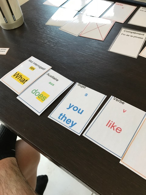 Nous avons repris nos cartes à manipuler pour poser des questions (avec l’ordre AUX-Sujet-Verbe- …. ? ) ou écrire des phrases négatives avec « Did » et « didn’t » … Il me semble que c’est entrain de bien s’installer ….