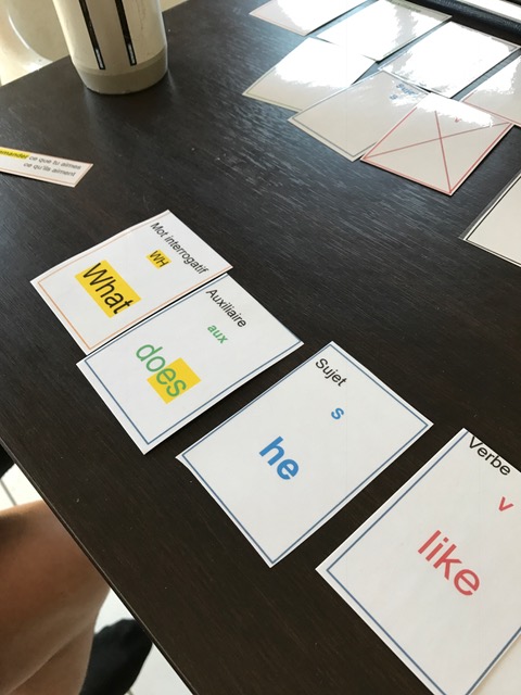 1ère question tirée par Léo : demander ce que tu aimes .Il la fabrique avec les cartes : « What do you like ? »