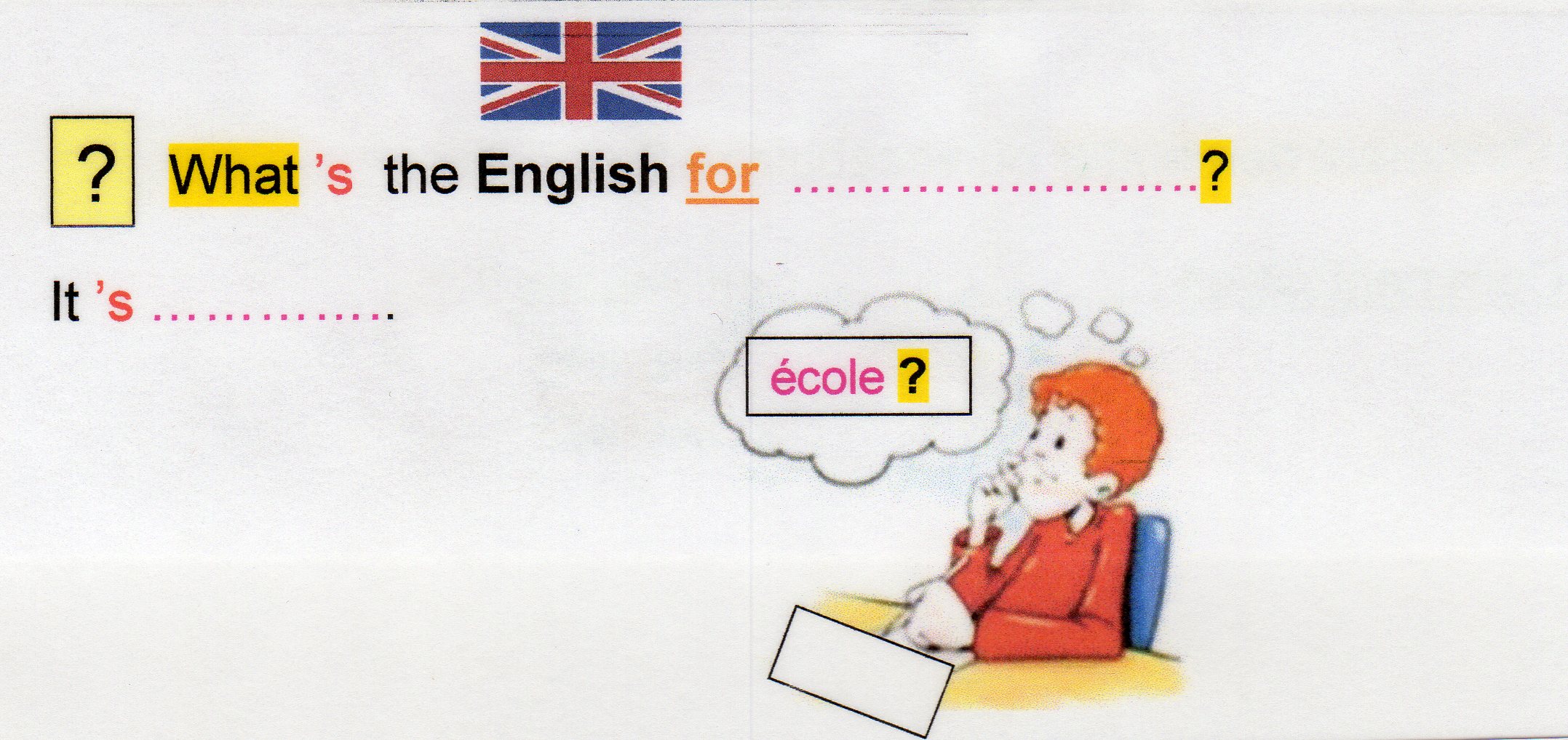 - Reprise de l’ordre des termes (comme dans les tableaux ci-dessus) : on peut d’ailleurs travailler les « yes-no questions » comme les « WH questions ».Nous garderons sous les yeux ce schéma tant que ce sera nécessaire (du moins à la maison ….)