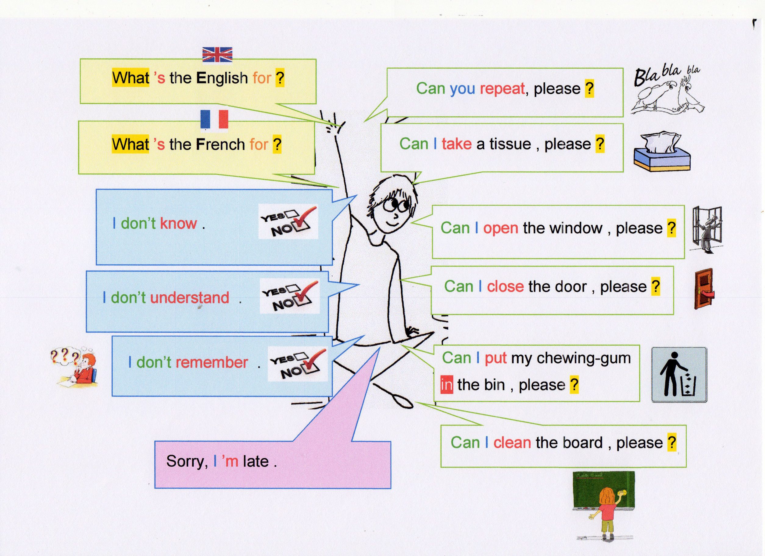 Nous avons continué les cartes « je dis, je demande, je réponds » présentées ici ou là .En voici d’autres (en lien avec ce qui est étudié en classe) :