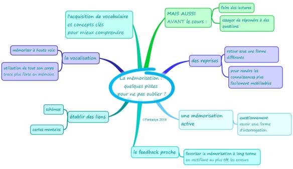 J’ai retrouvé un document extrait d’un MOOC qui s’est appuyé sur l’ouvrage « Mets toi ça dans la tête » Peter C.Brown, Henry L.Roediger, Mark A.McDaniel (chroniqué ici) : quelques « idées » à réfléchir ci-dessous en carte mentale pour lutter contre l’oubli …. :