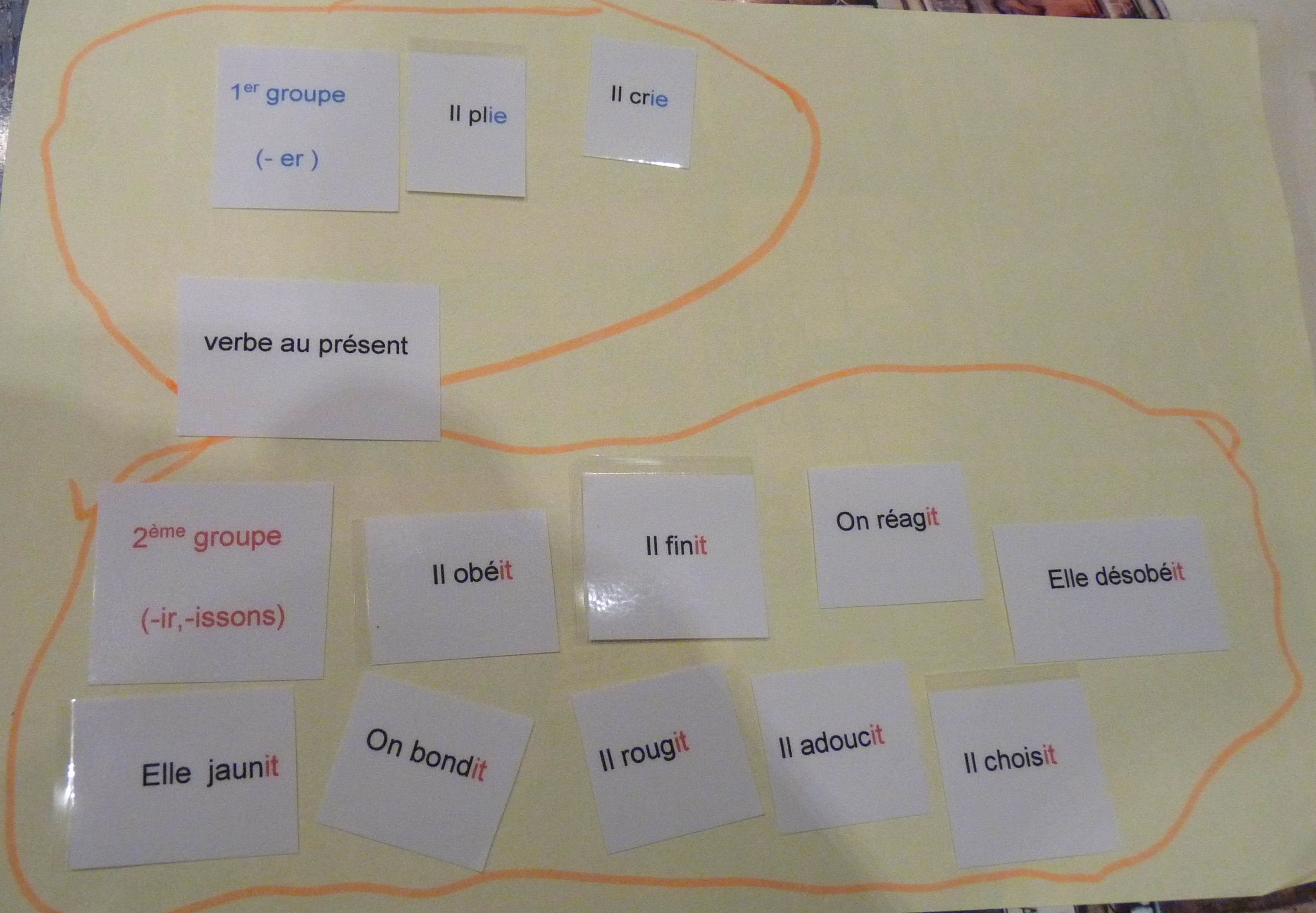 - pour chaque phrase, j’encadre le verbe et j’entoure le sujet ( ou ce qu’on a l’habitude de faire mais là les éléments liés sont mis en valeur )