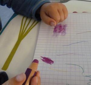 et le travail en image : d’abord les étapes 1 à 3 sur papier (qui auraient pu être faites sur l’ordinateur mais Léo a encore besoin de ce contact avec le papier ….)