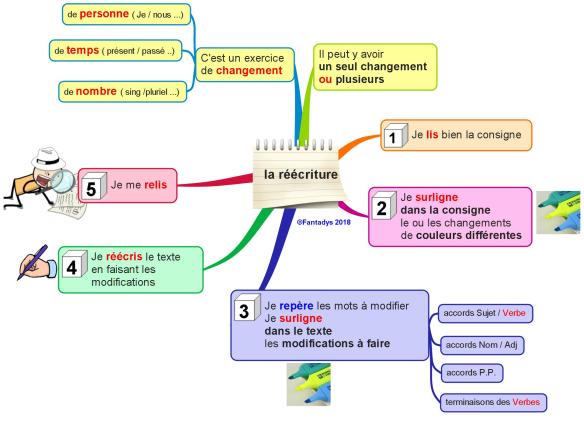 Réécrire, transposer, changer sont un peu des mots qui veulent dire la même chose dans ce type d’exercice . On peut par exemple donner cette définition (que j’ai notée dans la carte mentale sur une « méthode de réécriture ») : La réécriture est (principalement) un exercice de changement :