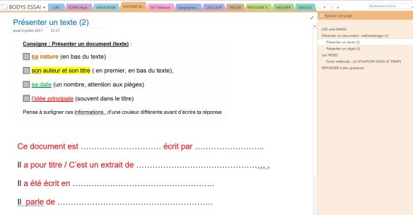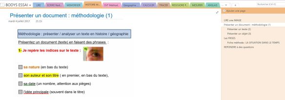 à tester donc …. et ces documents/méthodes vont bien sûr faire partie de la BODYS [ onglet » LIRE » et onglet « EXTRAIRE les informations »] sachant qu’ils devraient être utiles dans plusieurs disciplines (Histoire, Géographie, SVT, Maths, Physique …) [mon rêve d’harmonisation sans doute … ]