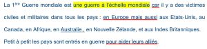 Les chapitres étant d’une composition similaire, je me suis attardée sur la partie HISTOIRE. Pour entrer dans le vif du sujet, nous avons regardé de plus près le 1er thème « L’Europe, un théâtre majeur des guerres totales (1914-1918) et son 1er chapitre « Civils et militaires dans la 1ère Guerre mondiale »