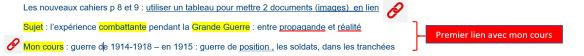 Après avoir visionné une vidéo « C’est pas sorcier, la 1ère Guerre mondiale »,nous avons travaillé sur la situation historique de ce 1er chapitre avec une question clé : « Quelle est la réalité de la vie des soldats dans les tranchées ? entre « propagande et réalité » ? » La question-clé apparaît dans chaque situation ou étude de cas : ainsi on sait d’entrée « où l’on va », ce que les documents vont illustrer.