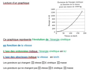 – document sous word graphiques 1 et 2 : évolution de l’énergie cinétique en fonction de la vitesse / évolution de l’énergie cinétique en fonction de la masse Lecture de graphique E Cinet