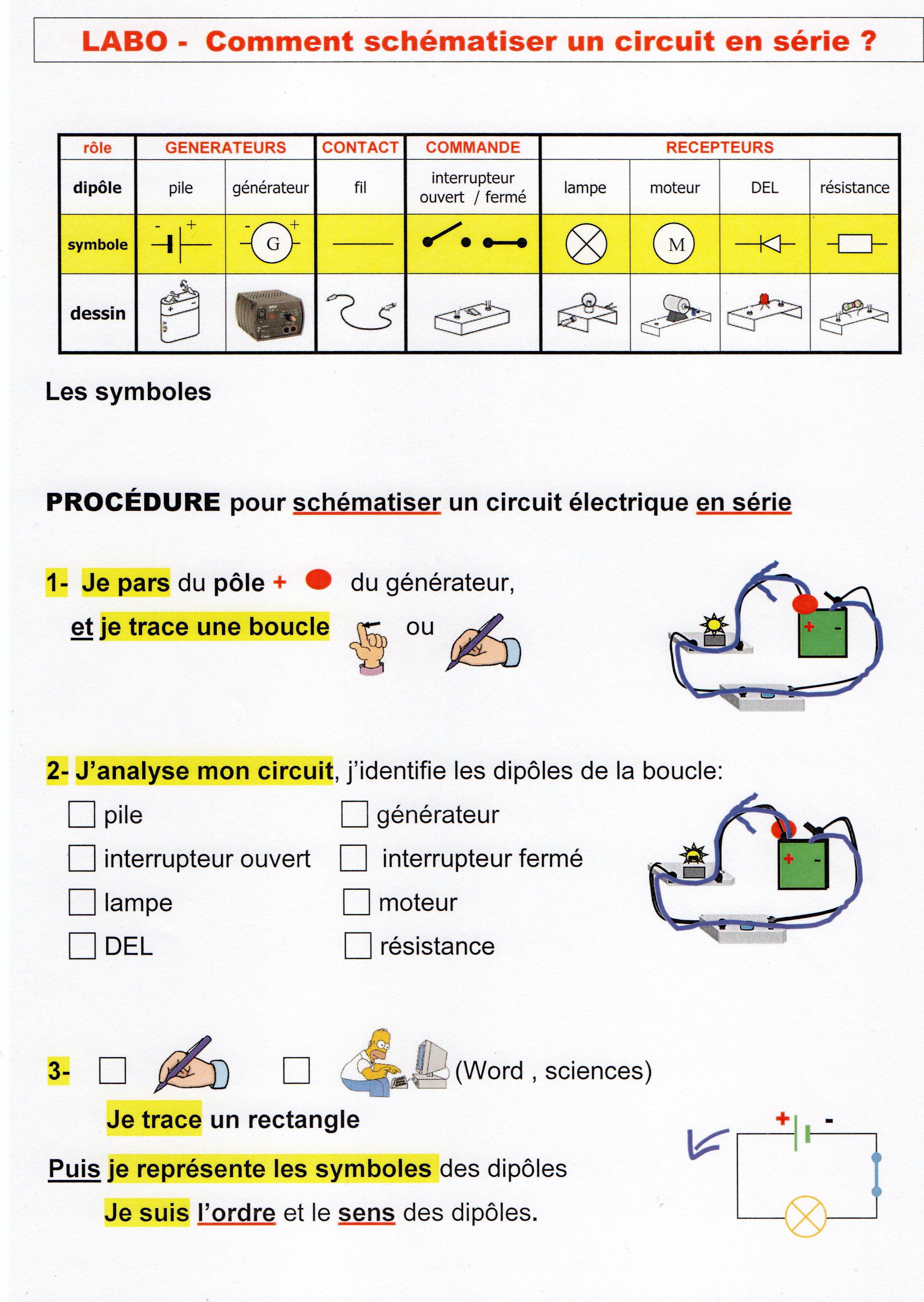 une fiche procédure : le schéma d’ un circuit électrique en série (à l’essai)
