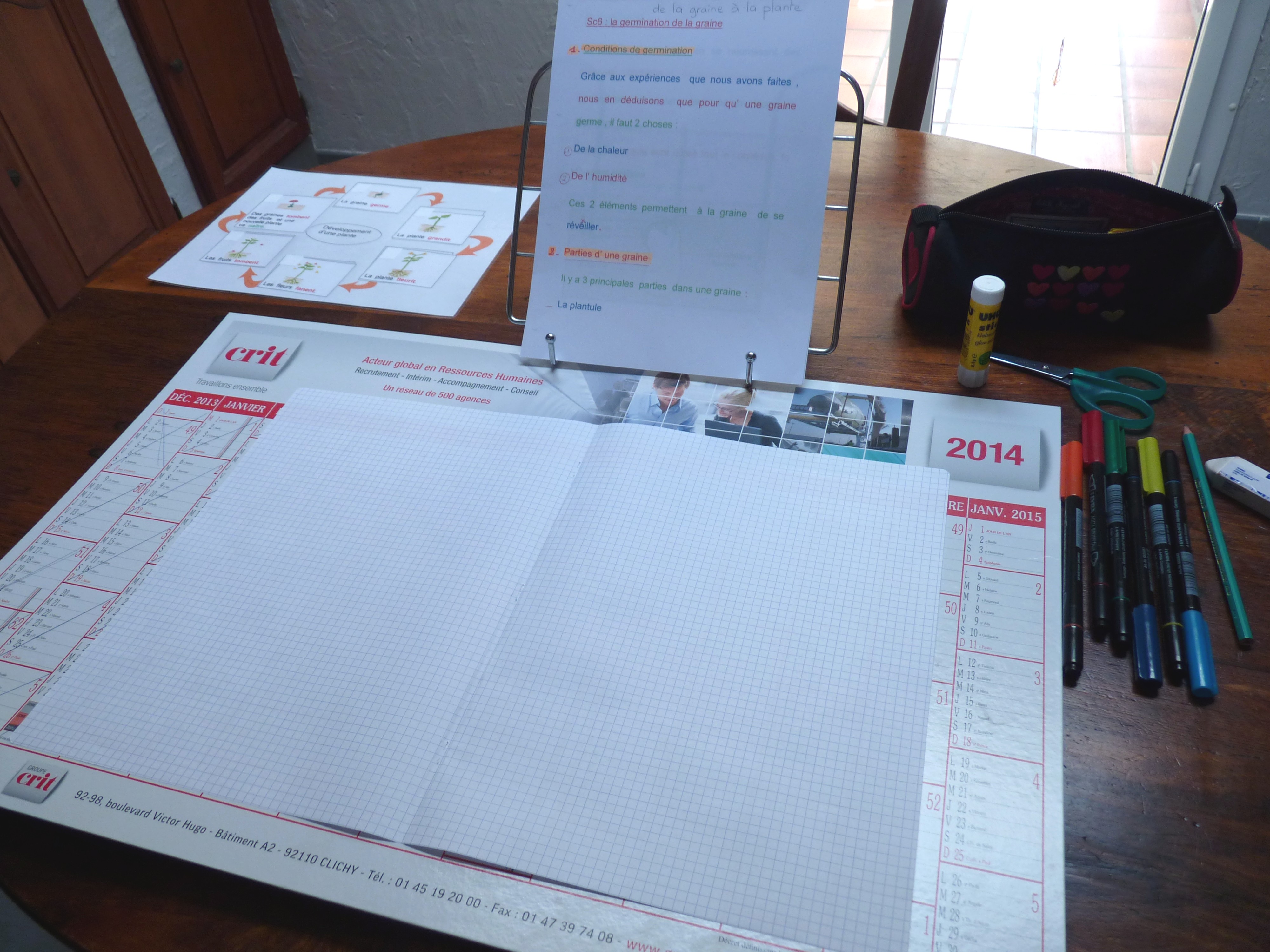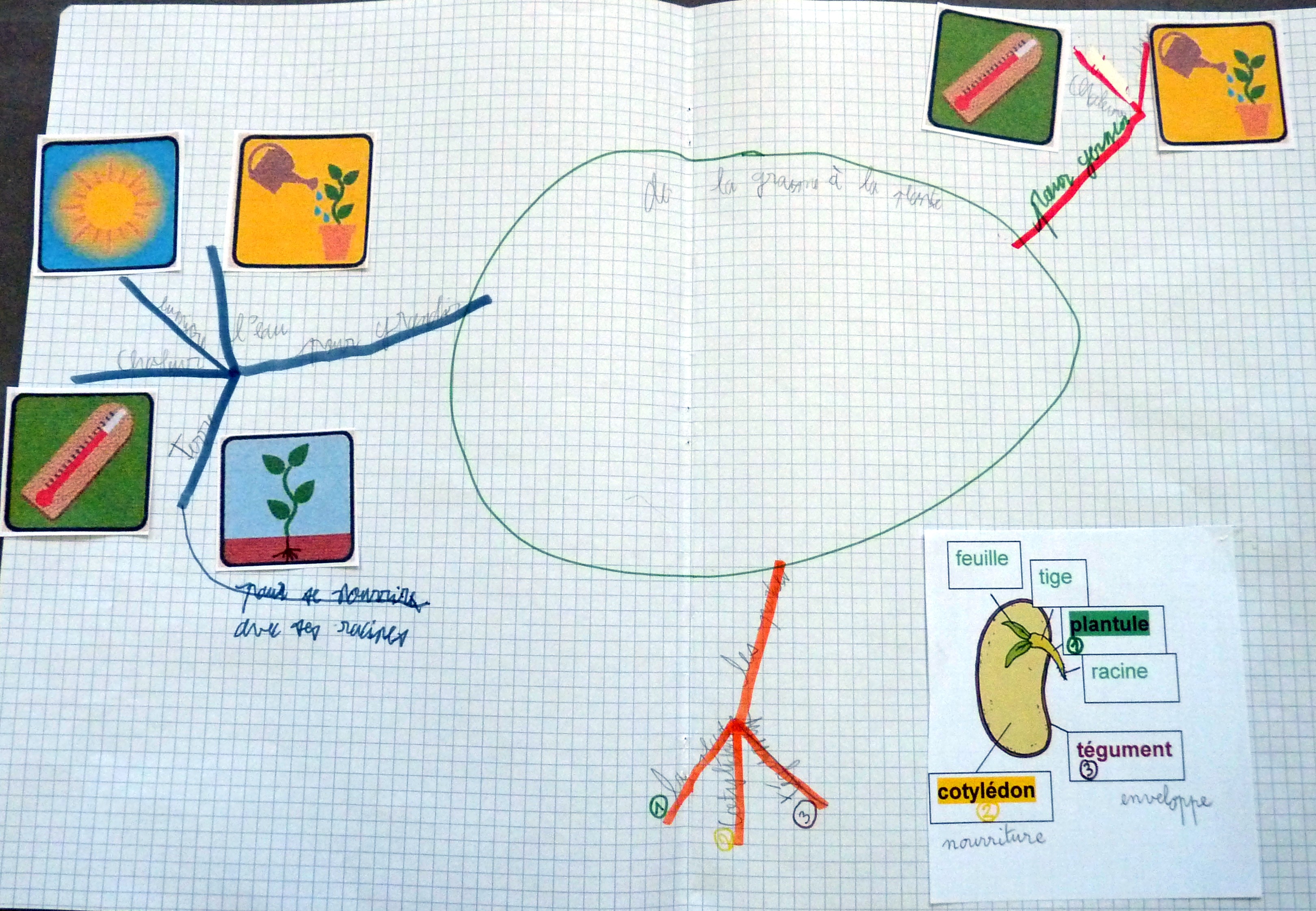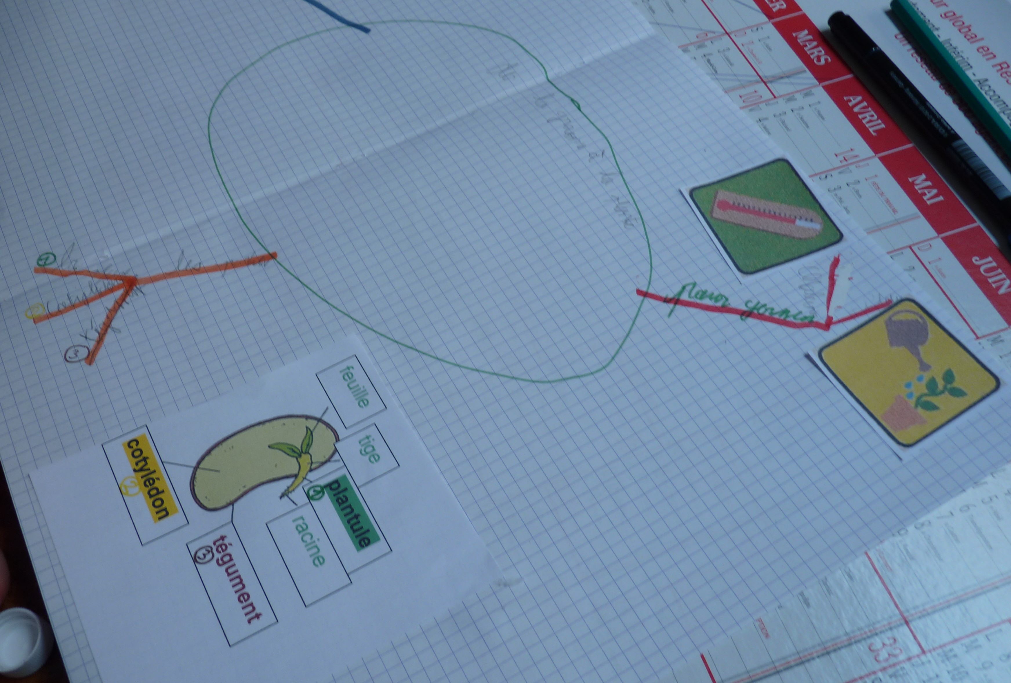 Cette fois, nous allons partir de la 2ème leçon sur les plantes , d’une feuille blanche , de feutres et essayer de faire créer la carte directement à Léo , sachant que la leçon s’y prête bien car il y a 3 paragraphes, pour idéalement 3 branches.