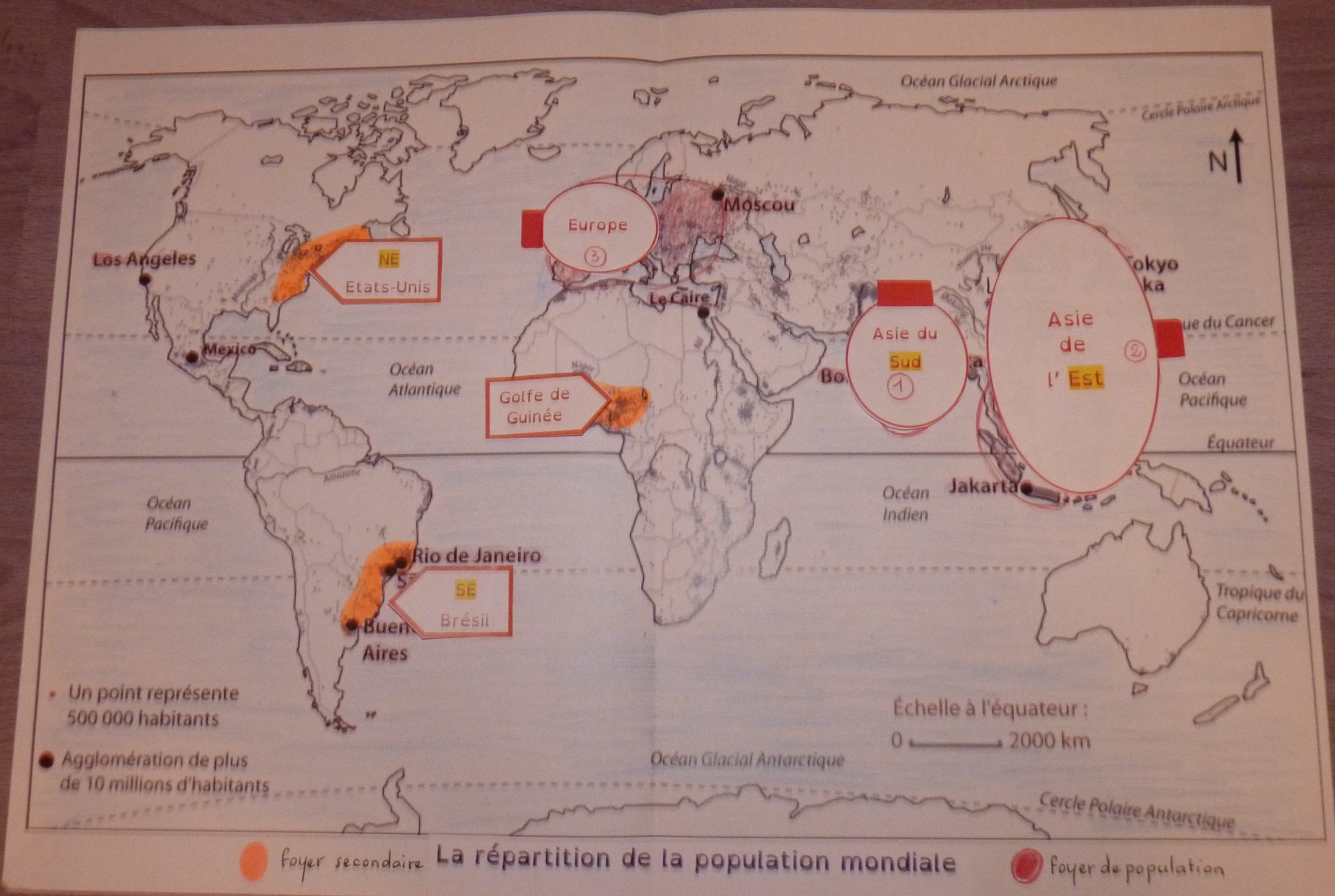 carte sur la population mondiale n°1( celle qui avait été faite en CM1) :