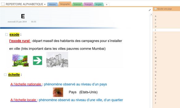 - à créer , au fur et à mesure (essayer de ne pas se laisser « dépasser / déborder » par la vitesse du cours (les 3 heures de géo ont lieu 3 jours consécutifs donc cela avance très vite et peu de temps pour « digérer » les nombreuses infos….)