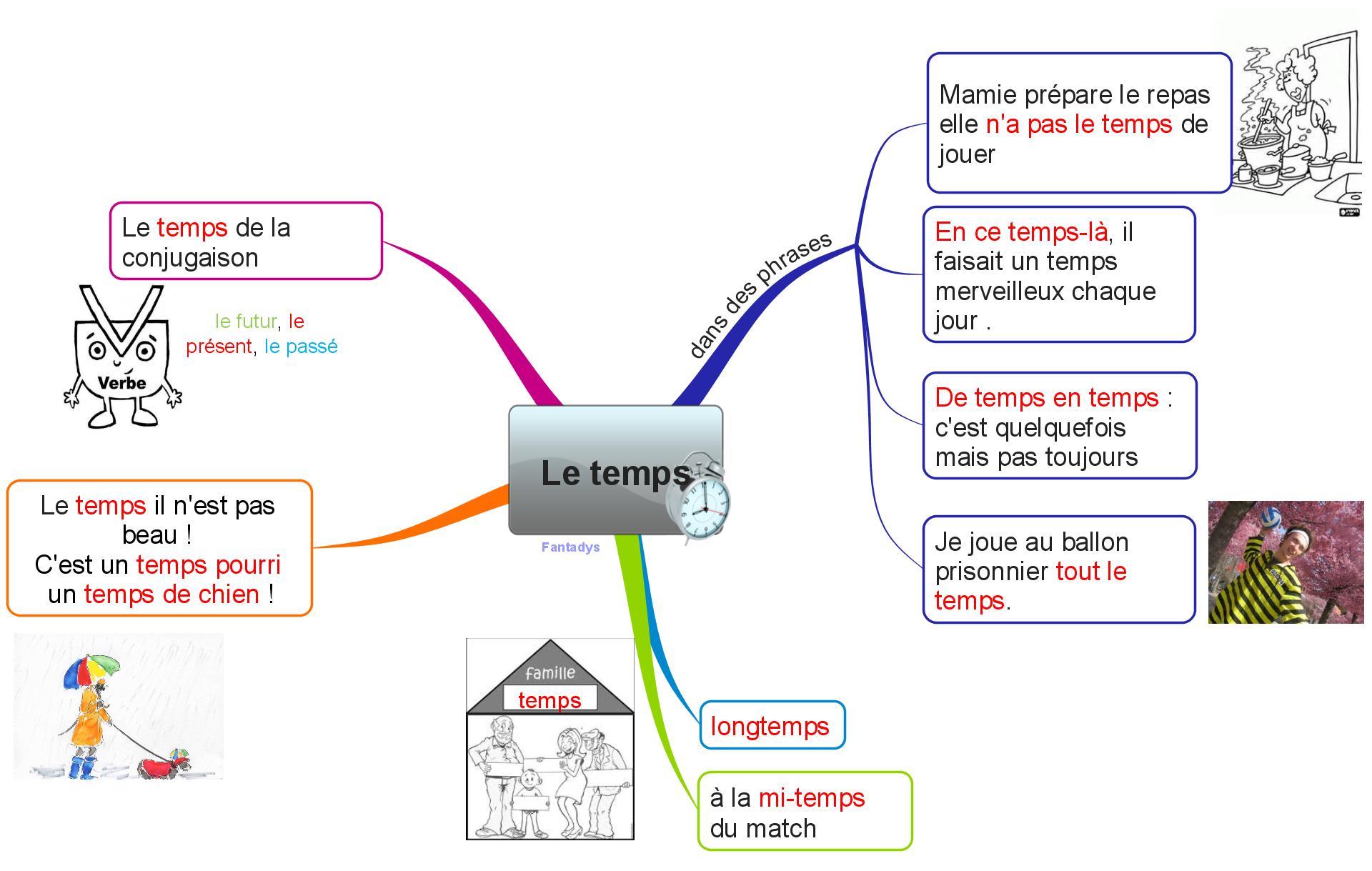Pour continuer le travail sur le temps en liaison avec la carte mentale , au programme aujourd’hui , sous forme de jeu : trouver des mots à partir du mot temps.