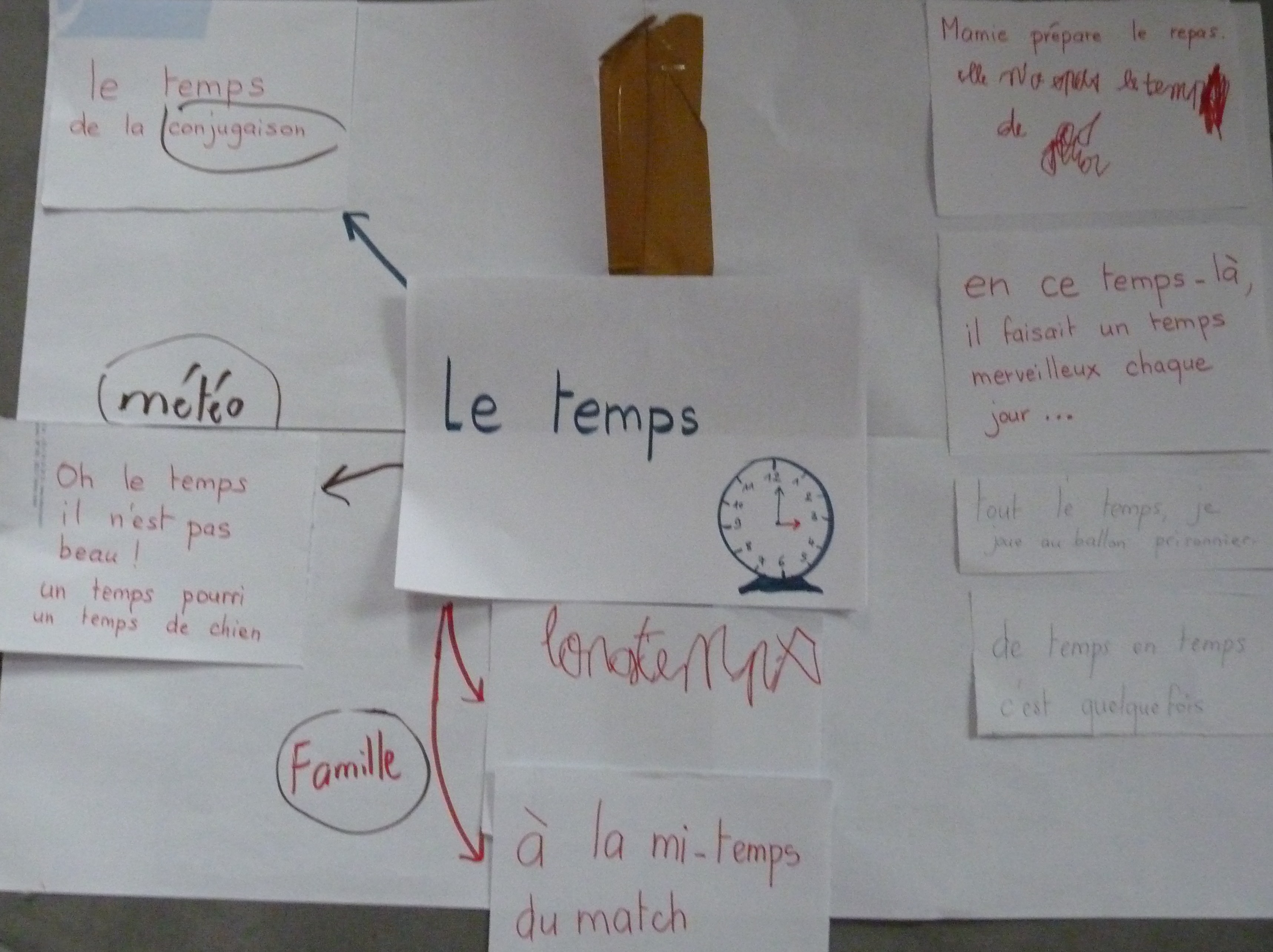 Plus tard dans la journée, , nous avons installé ces papiers autour d’une image « Le temps » pour préparer la carte mentale autour du temps.