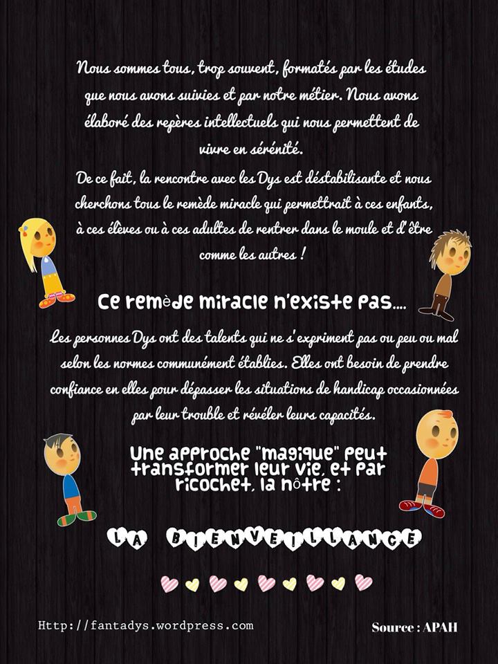Pour moi, avoir un enfant différent c’est se tourner inévitablement un jour où l’autre vers des principes d’éducation bienveillante : j’aime mon enfant et je le soutiens, quelque soit sa façon d’être ou de faire, je suis disponible physiquement, mentalement et émotionnellement. Cette éducation respectueuse s’inscrit dans une démarche de coopération et de partage avec pour objectif que les enfants soient épanouis mais aussi les parents !
