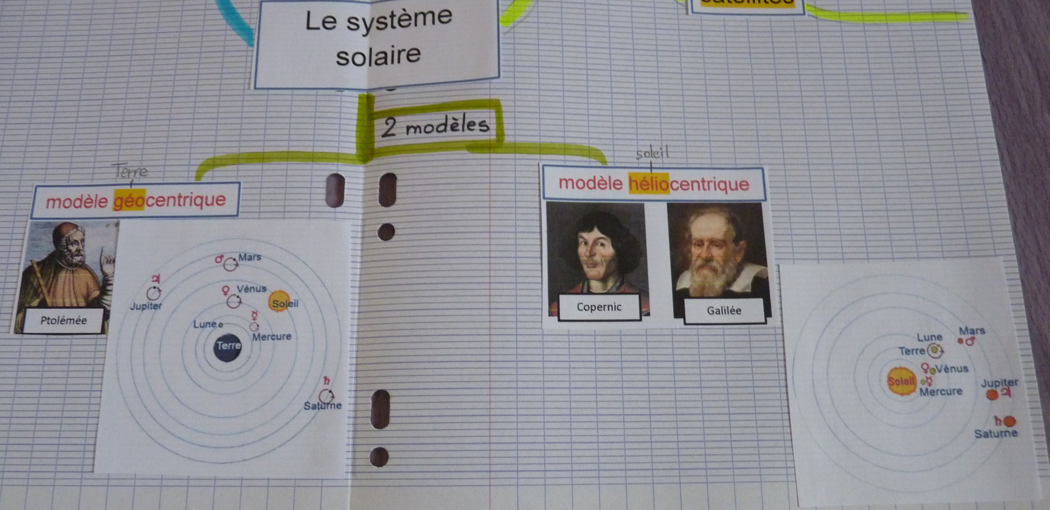 - le titre , au centre de la carte mais au fait de quoi parle ta leçon ? « de la lumière et des ombres » ( une étiquette est prête , Léo la colle au centre du grand rond qu’il avait préparé pour y mettre le titre)
